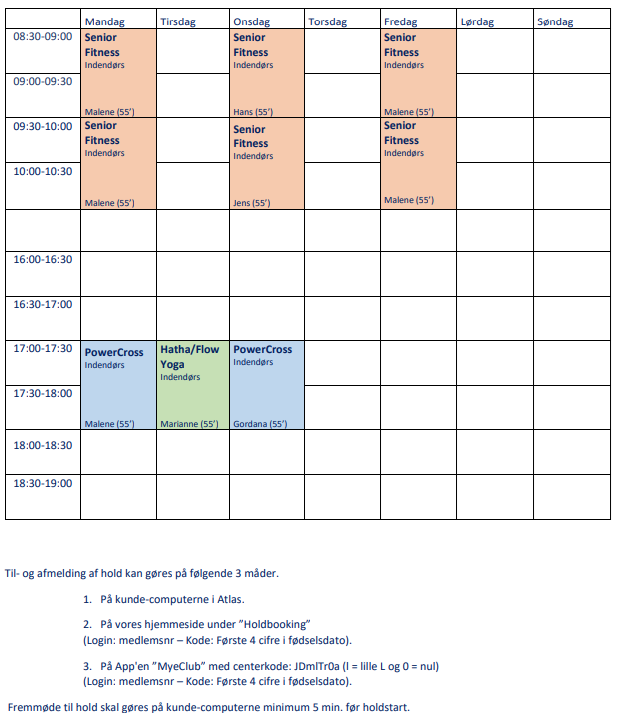Bliver du forhindret i at deltage på et hold du har reserveret plads på, skal du huske at afmelde dig holdet igen, så andre kan få glæde af pladsen.